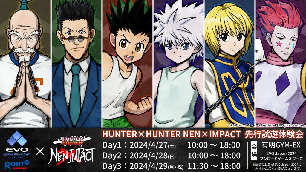 4/27(土)より3日間、EVOJapan2024 ブシロードゲームズブースにて、「HUNTER×HUNTER NEN×IMPACT」の試遊体験会を開催!